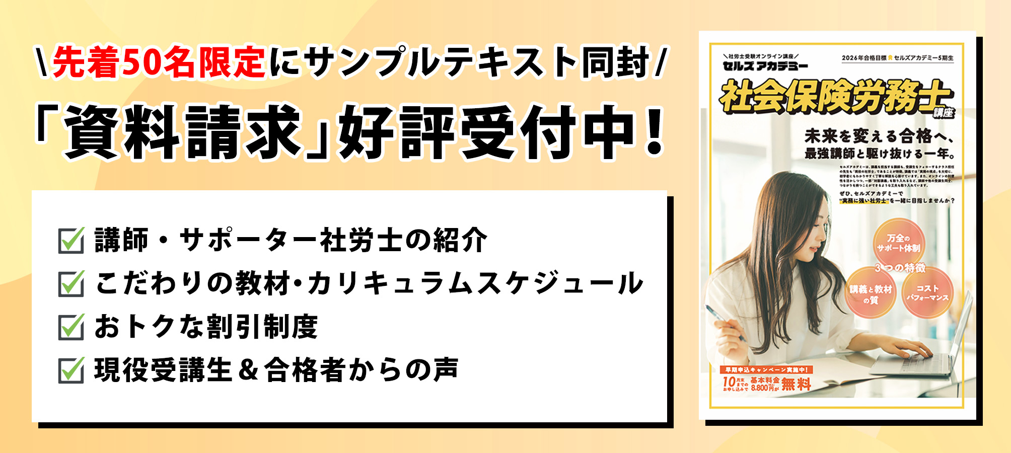 資料請求できる(先着50名にはサンプルテキストを同封!)